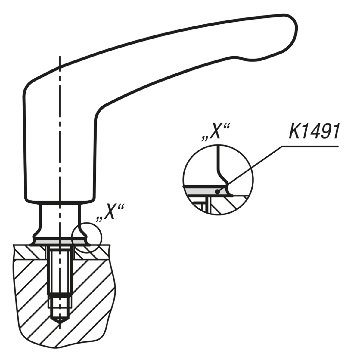 Clamping lever designed for the hygienic sector. The completely closed grip part and the shaft seal prevent contamination of the lever internal workings. Additionally, the screw insert has a conical collar so that the fastening point can be hygienically sealed with the Hygienic USIT® sealing and shim washer.