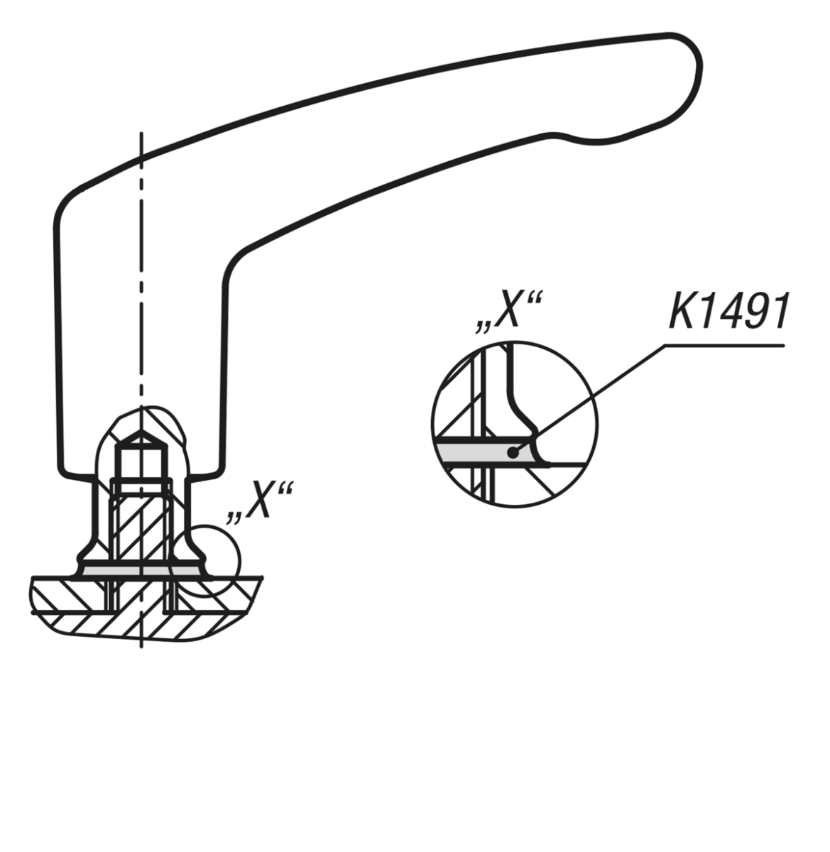 Clamping lever designed for the hygienic sector. The completely closed grip part and the shaft seal prevent contamination of the lever internal workings. Additionally, the screw insert has a conical collar so that the fastening point can be hygienically sealed with the Hygienic USIT® sealing and shim washer.