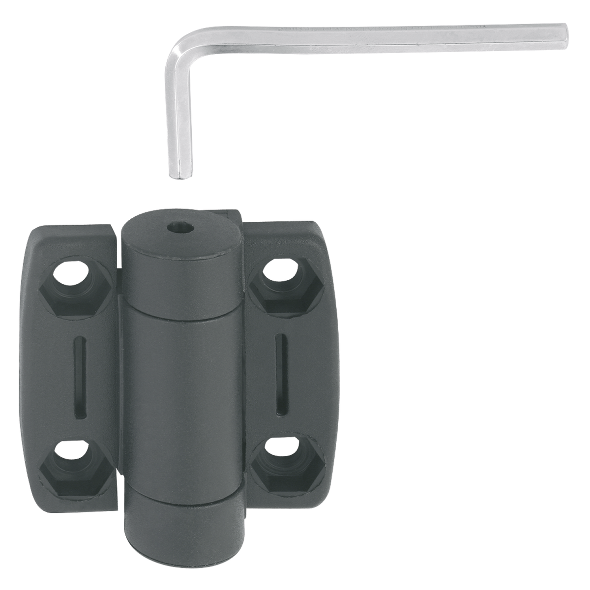 These friction hinges enable doors or lids to remain open in any position. A set screw allows the amount of friction to be infinitely adjusted between 0-5 Nm. The hinges are available with or without guide tabs for aluminium profile slots.