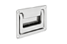 Stainless steel retractable grips with marginal installation depth. For base and mounting plates or drawers. With return spring. The grip automatically swivels back into its resting position after use.