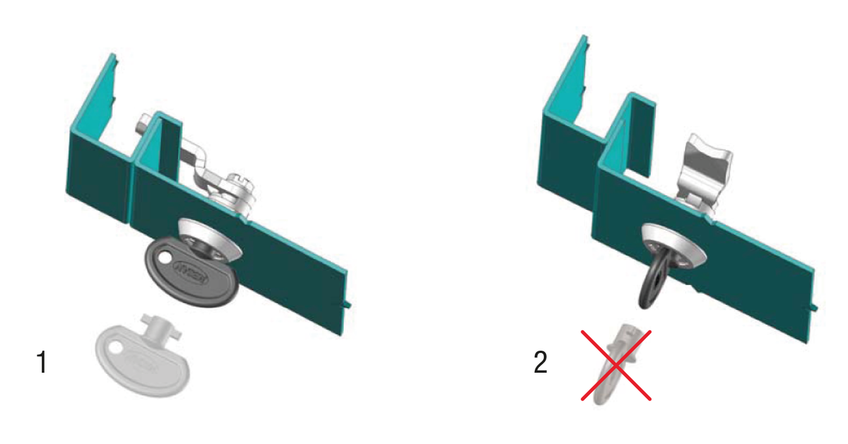Please order key separately. Lock can only be opened and closed with a specific key. The key can only be removed in the closed position. With an open lock the key acts as a grip.