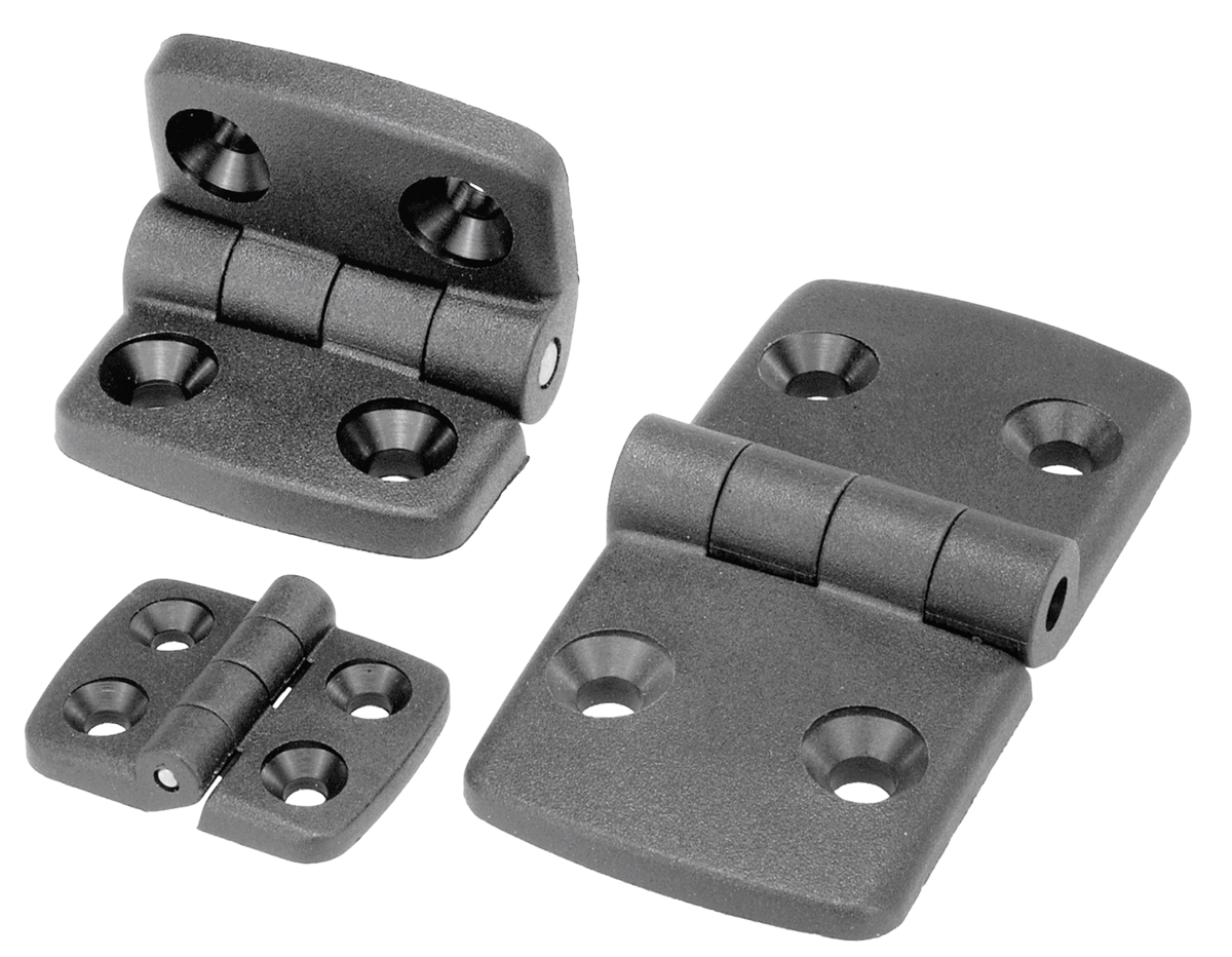 Todas las bisagras también se pueden suministrar a petición con salientes guía para las ranuras de perfiles de aluminio (ranura 6, 8 y 10). Esto facilita el montaje, asegura la bisagra contra torsiones y la hacen más resistente.