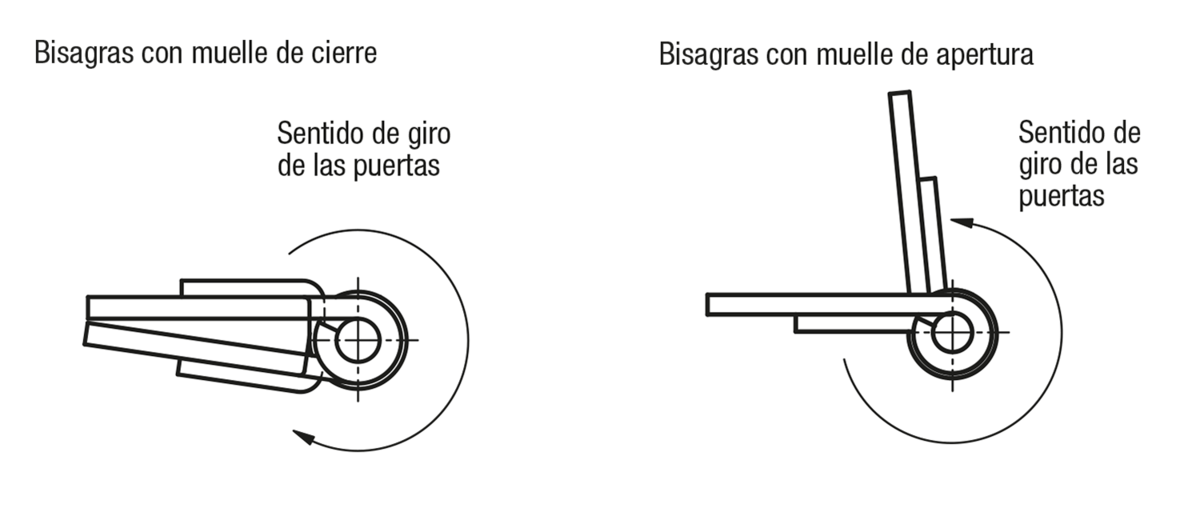 Bisagras elásticas de acero o acero inoxidable, 180 mm, muelle de apertura