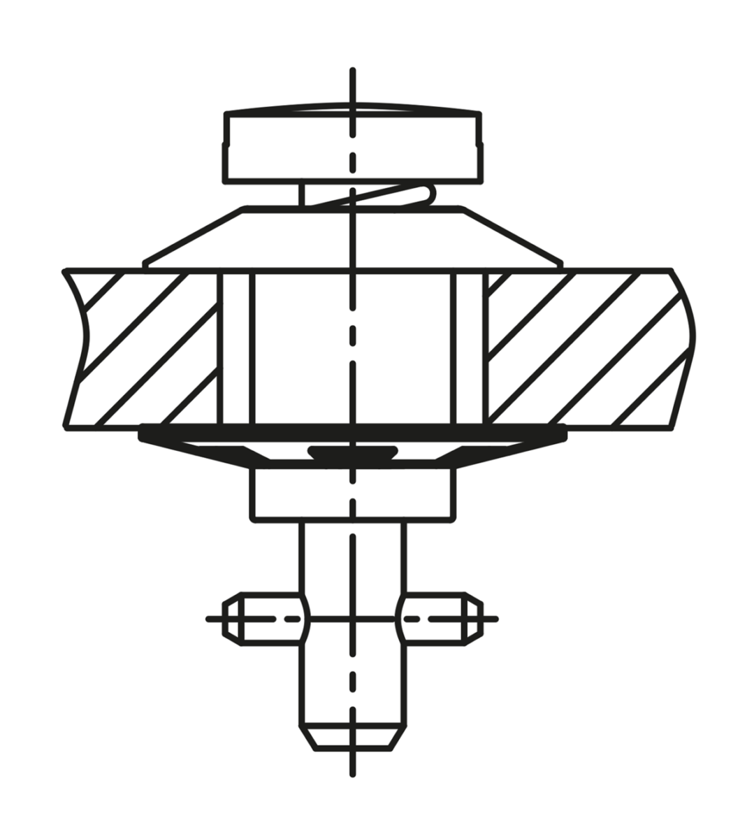 Arandela de sujeción para la fijación del perno de cierre. De esta manera el perno de cierre permanece unido a la cubierta protegido contra pérdida.