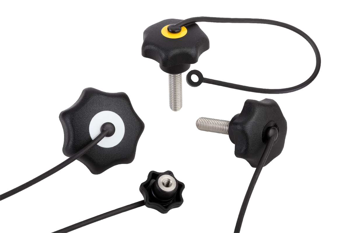 Empuñadura en estrella de termoplástico, casquillo o perno roscado de acero inoxidable 1.4305.