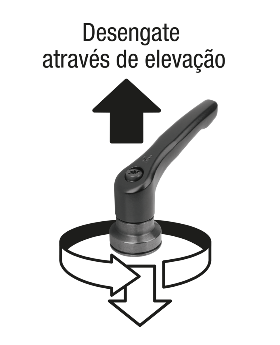 O cabo da alavanca é engatado no inserto roscado por meio da coroa dentada
