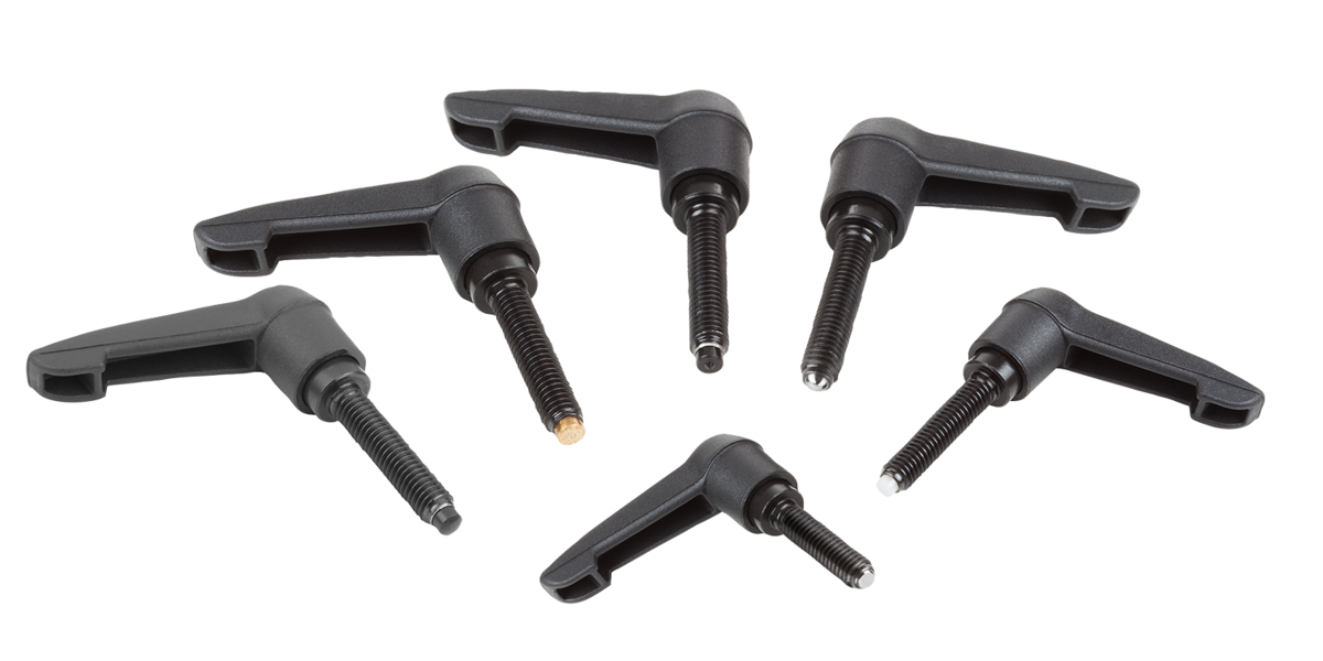 Outros tipos de roscas macho, comprimentos de parafusos, cores de alavanca de aperto e variantes de posicionadores, bem como versões especiais.