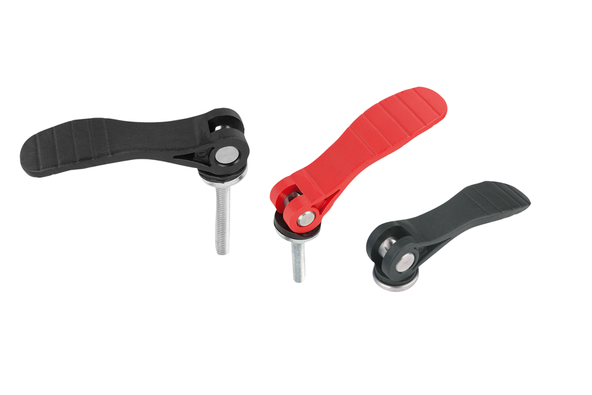 Alavanca excêntrica de plástico com rosca macho, arruela de pressão de plástico/metal e prisioneiro de aço ou aço inoxidável