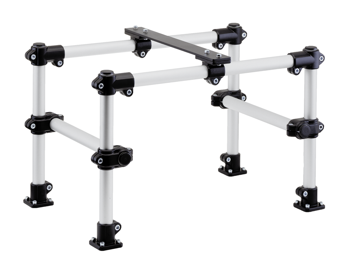 O tamanho básico para tubos redondos é de Ø18 mm ou Ø30 mm. Na fixação de tubos menores ou na mudança de tubos redondos para quadrados, a adaptação pode ser feita através de buchas redutoras K0492.