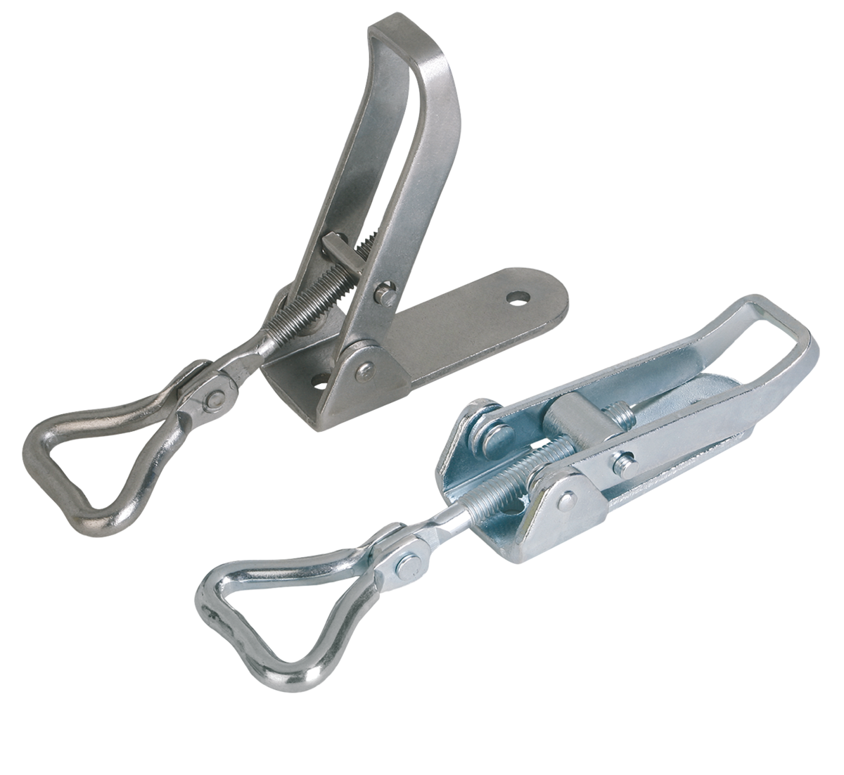 Os fechos de engate reguláveis oferecem um sistema de fechamento seguro para aplicações industriais. Por ultrapassarem o ponto morto, eles suportam vibrações. Para compensar tolerâncias, o fecho de engate possui um gancho esticador com mancal móvel.