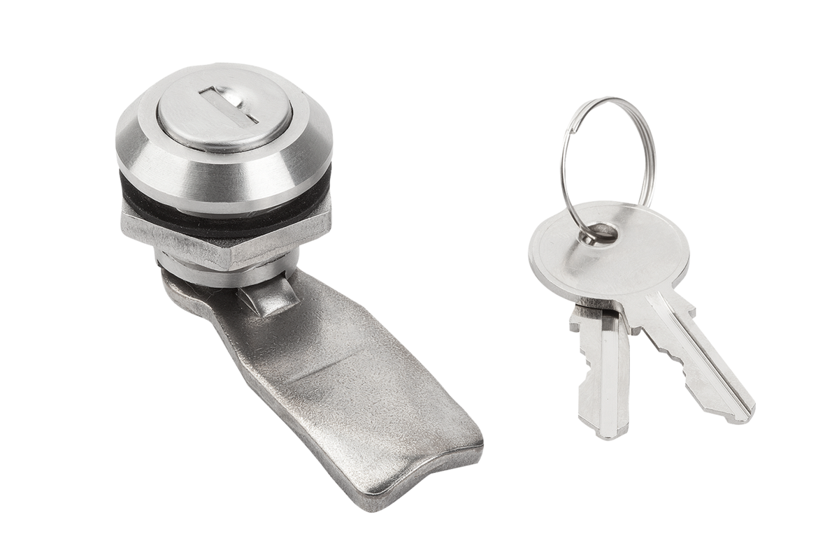 Fecho lingueta com travamento. Pode ser usado à direita ou à esquerda com ângulo de fechamento de 90°. Ele pode ser instalado pré-montado. Este fecho lingueta com trava é fornecido com 2 chaves. A chave pode ser retirada em ambas as posições (abrir e fechar). As fechaduras possuem fechos iguais, o que significa que cada cilindro pode ser aberto com a mesma chave (fechadura 1333).