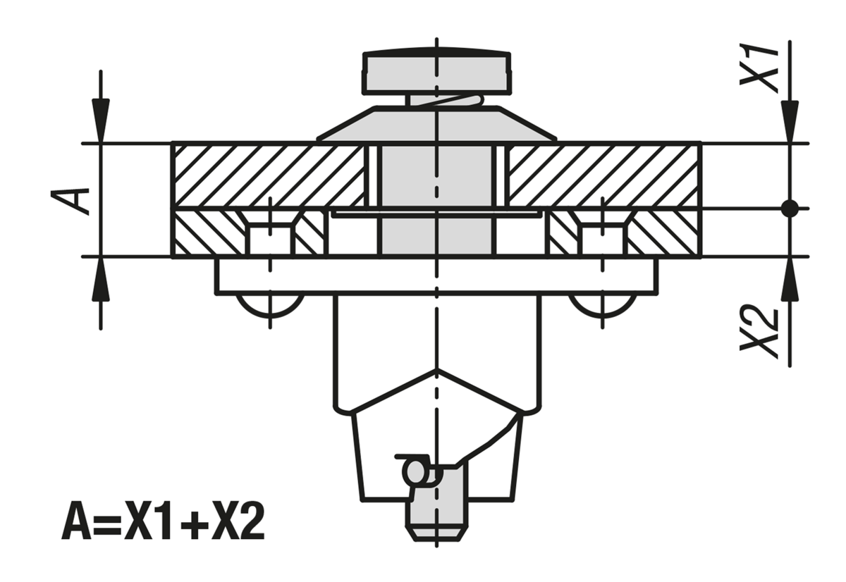 Um furo de 8 mm é feito através da cobertura; o pino com pino de travessa é encaixado e fixado pela parte traseira com a arruela de retenção. Um furo central de 13 mm e dois furos de fixação são feitos na estrutura de acordo com o