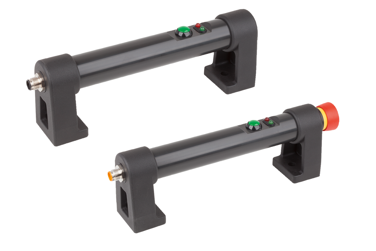 Puxadores tubulares de plástico com função de comutação elétrica e um botão de acionamento com função de parada de emergência