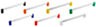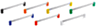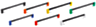 Extremidade das peças em cinza escuro RAL 7021, laranja puro RAL 2004, amarelo colza RAL 1021, verde segurança RAL 6032, azul tráfego RAL 5017, vermelho tráfego RAL 3020 e cinza claro RAL 7035.