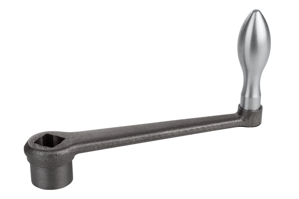 Manivelas retas, semelhantes à norma DIN 469, forma D, com cabo anatômico girável