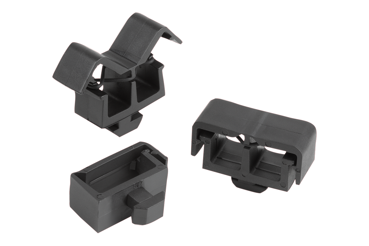 O suporte para cabos serve como componente de fixação para cabos e tubos flexíveis com um diâmetro de até 12 mm.